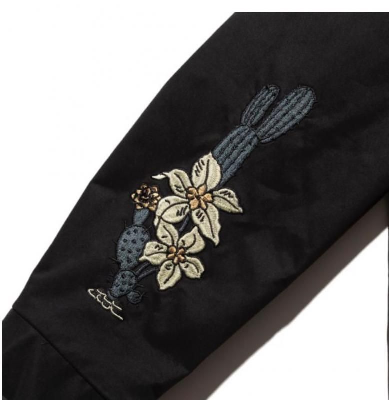 一着。インパクトのあるグラフィックを丁寧な刺繍で仕上げたボンバージャケットです。