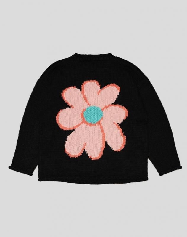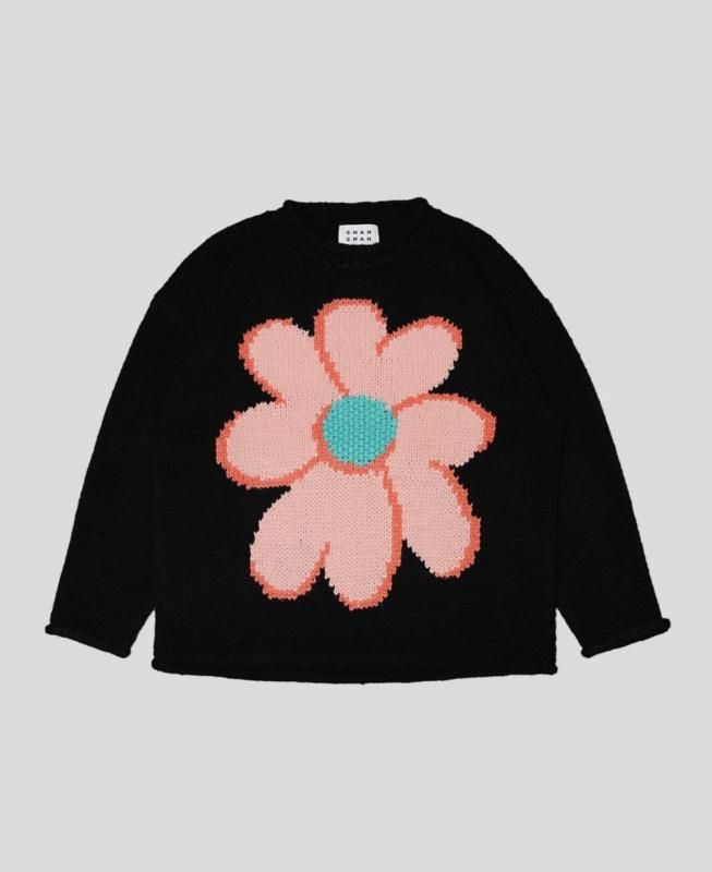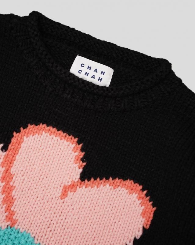 ChahChah/チャーチャー/CC "FLOWER with LOVE" HAND KNIT/ハートフラワーロールニット/BLACK