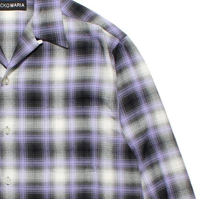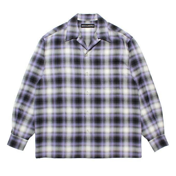 WACKO MARIA/ワコマリア/OMBRE CHECK OPEN COLLAR SHIRT L/S ( TYPE-1 )/オンブレチェックオープンカラーシャツ/PURPLE