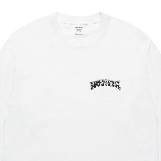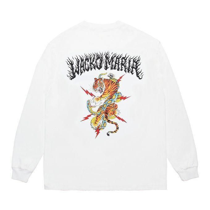 左胸部に「TIM LEHI」描き下ろしによる「WACKO MARIA」のテキストプリント、バックに「TIM LEHI」描き下ろしによる「WACKO MARIA」のテキストに添えて、グラフィックプリントが落とし込まれたデザインワーク。