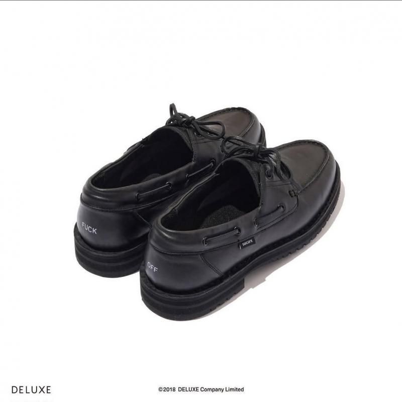 アッパーにスムースレザーを使用したデッキシューズ。シュータン・インソールに2ブランドのロゴをエンボス加工で配置。履き口に並行してレザーレースを沿わせたボートシューズのクラシックな意匠を反映したデザを制作。側面外側にロゴ入りピスネーム、アウトソールに表面にDELUXEロゴをレーザー刻印。はSUICOKEロゴの入るVibramソールを採用。フットウェアブランド SUICOKEとのチームアップモデル。