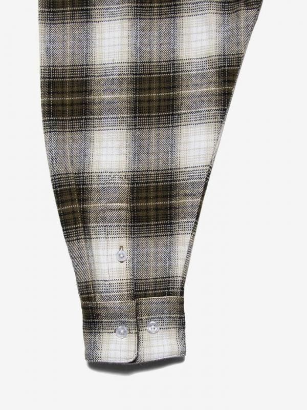 オープンカラーとフラットな裾が抜け感を演出し、肩の力を抜いたスタイルにフィット。印象的なオンブレチェック柄は、ヴィンテージライクでありながらどこかモダンな空気も併せ持つ。ゆったりとしたシルエットが自然体で魅せる、スタイリングの主役になるアイテムです。