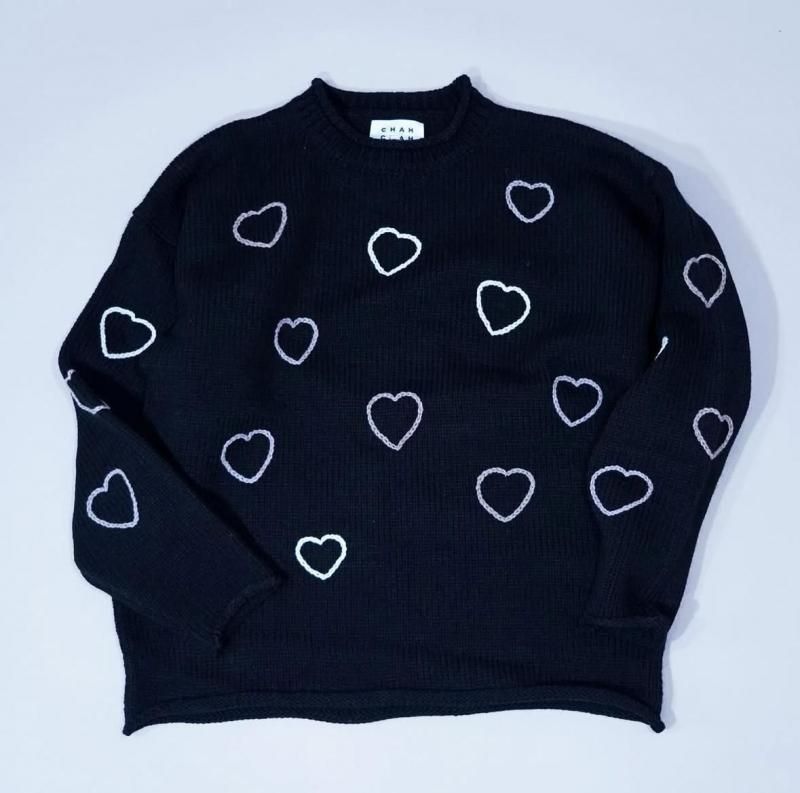 Chah Chahのアイコンアイテムとなるハートフルニット。