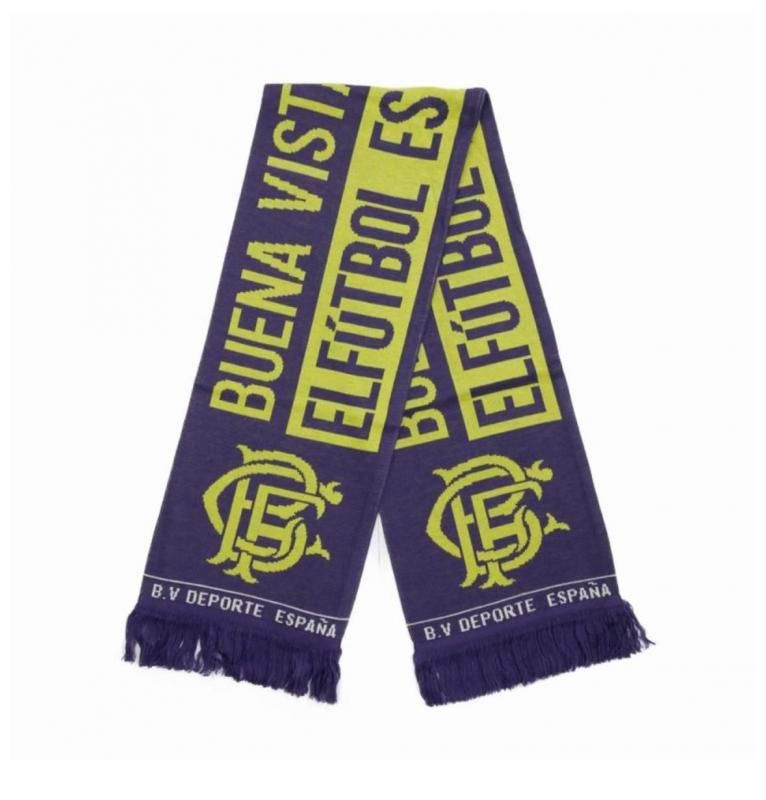 BUENA VISTA football club のロゴと応援に込めたメッセージをジャガード編みで表現したフットボールマフラー。