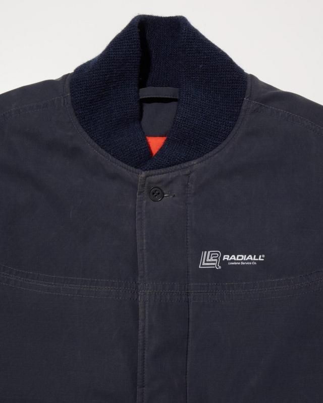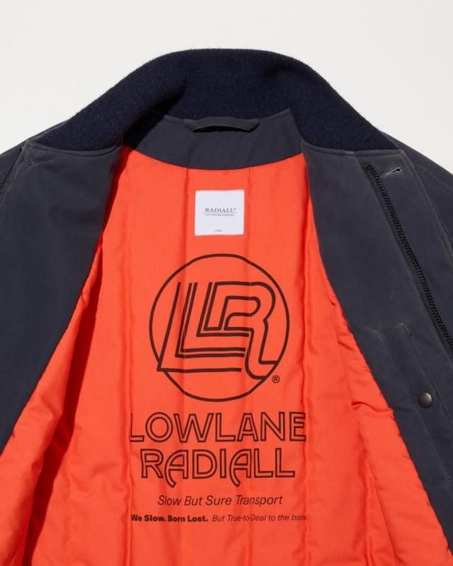 裏地に縦方向のキルティングステッチが入り、ロゴがスクリーンプリントで入る。
